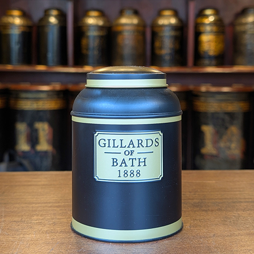 Transport yourself to a bygone era with our new Gillards of Bath tea tin, a beautiful homage to our rich heritage. Styled after the original, historic tea tins that have graced our shop since its founding in 1888, this tin is more than just a container—it’s a piece of Gillards of Bath history.